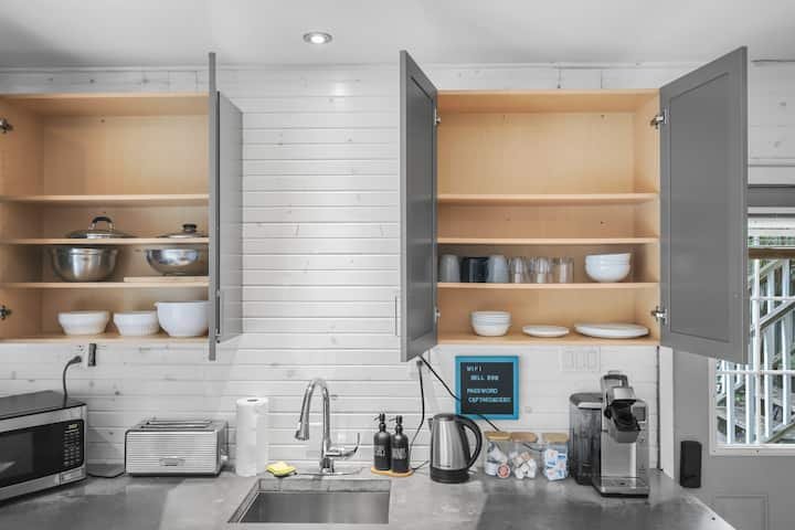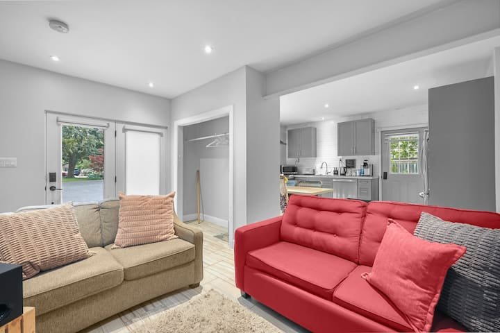 Welcome to our cozy 2-bed 1-bath cabin in the heart of downtown Cobourg! Perfectly situated just a short walk from the town’s various restaurants, cafes and shops & only a 3-minute drive to the beautiful Cobourg beach, this cozy retreat offers the perfect blend of convenience & comfort.
