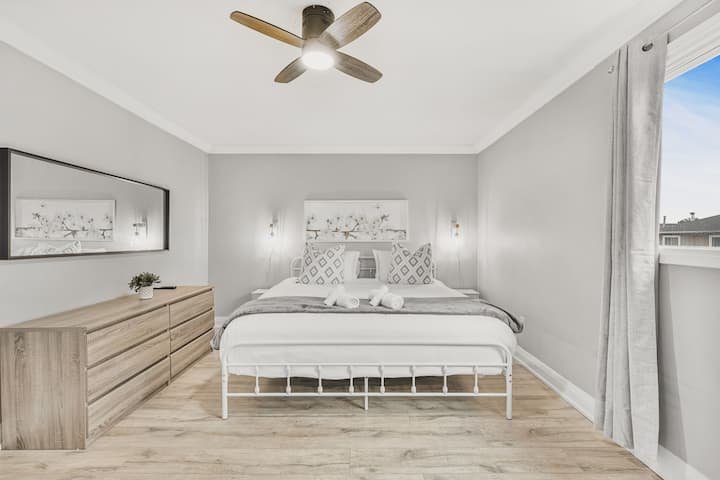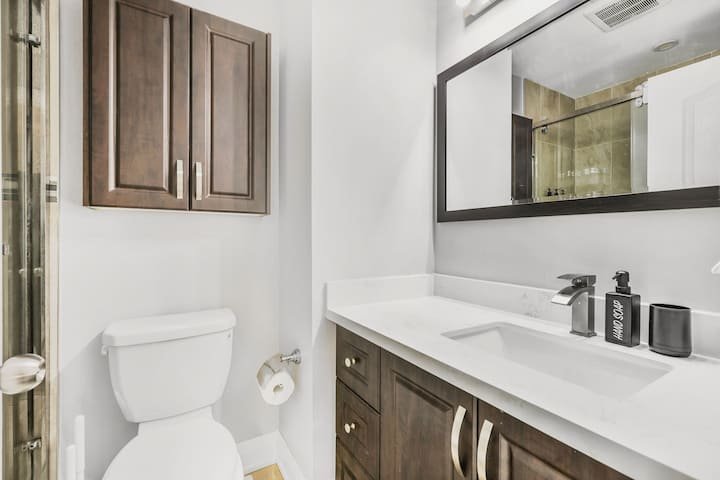 With 2.5 bathrooms, mornings are hassle-free. Freshen up in the modern, well-appointed bathrooms, and take your time to unwind in the luxurious bathtub after a day of exploration.