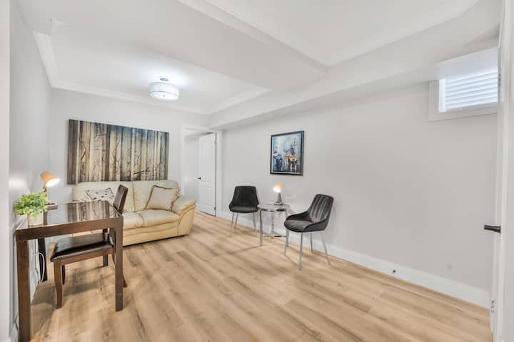 Step into a stylish and well-lit basement apartment designed for comfort and convenience.