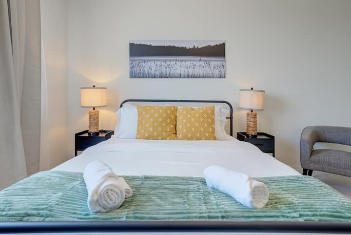 Three cozy bedrooms await your peaceful slumber. The master bedroom features a plush & comfortable bed and an ensuite bathroom for added convenience. Two additional bedrooms with comfortable queen-size beds ensure everyone sleeps soundly.