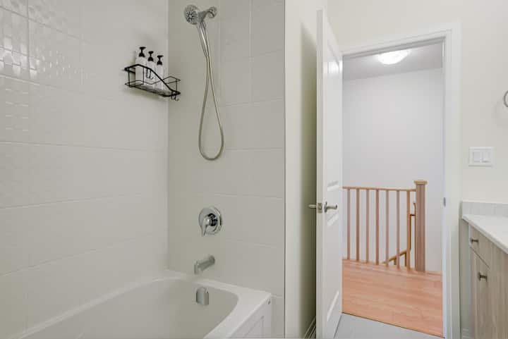 With 2.5 bathrooms, mornings are hassle-free. Freshen up in the modern, well-appointed bathrooms, and take your time to unwind in the luxurious bathtub after a day of exploration.